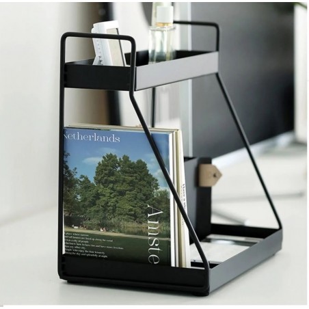 Bu şık ve işlevsel organizer, hem masa üstünde hem de banyoda düzen sağlamak için tasarlanmıştır. Siyah metal yapısı ve iki katlı raf sistemiyle, eşyalarınızı düzenli ve erişilebilir bir şekilde saklamanıza yardımcı olur.